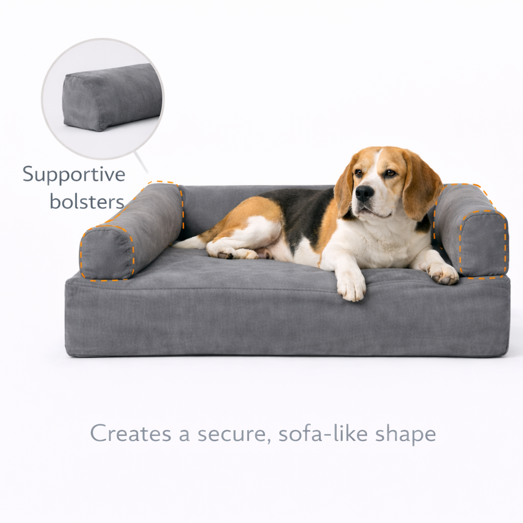 Structured bolsters offer a secure back or neck rest so big dogs can lean without sliding off.